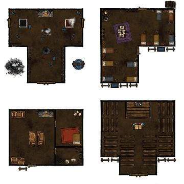 Want to customize your town in addition to this pack? Not a problem. You can use the unfurnished floor map templates to create your own unique stone, wood, or dirt buildings.