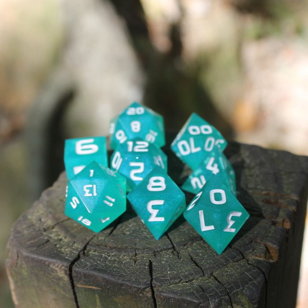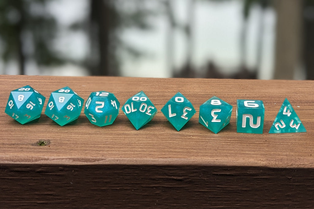 Tricksy Teal RPG Dice Set - Pearlescent Teal 8pc Dice
