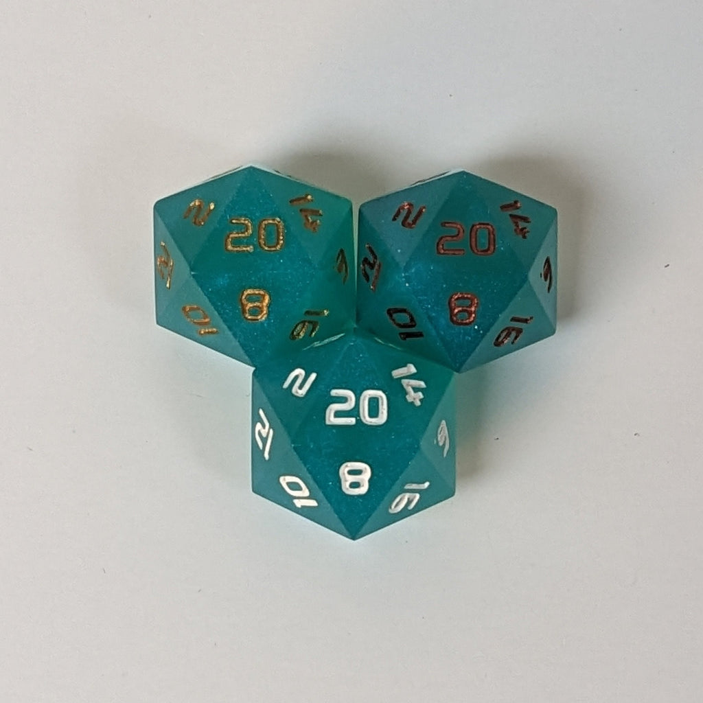 - Teal dice with a pearlescent shine