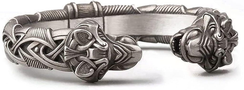 ⚔️ DESIGN: This beautiful Viking Bracelet has amazingly detailed Fenrir Wolf heads and Celtic knots work.