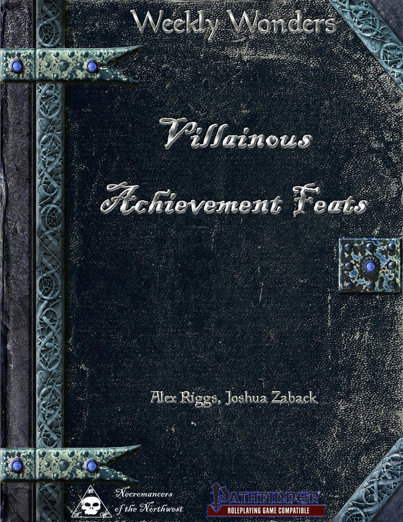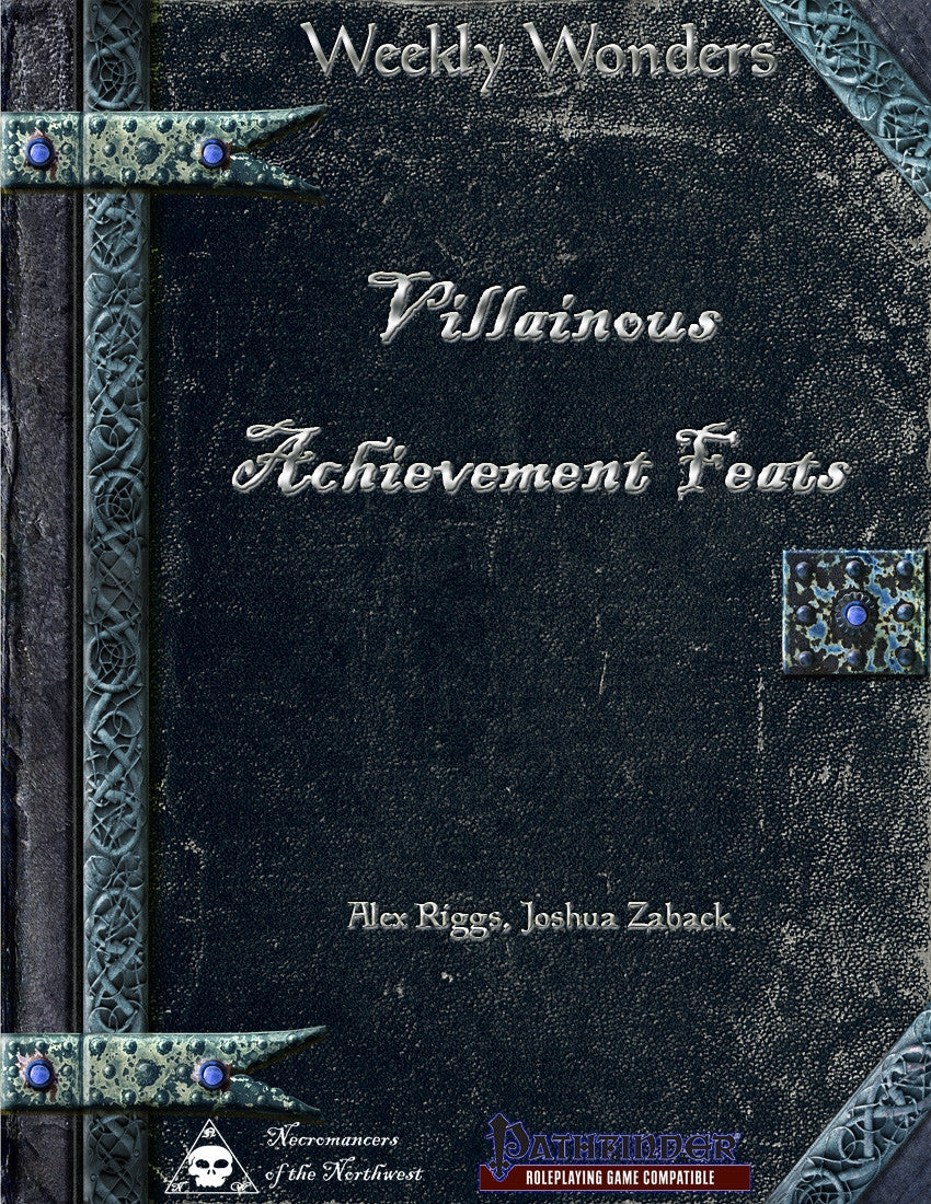 Being a villain isn’t about the powers you have, or the equipment you possess. Being a villain is about all of the horrible, terrible, and ultimately vile things that you do. The ability to cast fireball doesn’t make you villainous, but casting fireball on an orphanage run by nuns will change your alignment to evil real quick. This book presents 21 new achievement feats for villainous characters: feats whose prerequisites require you to complete heinous and nefarious deeds in order for you to be able to take them, providing the players of evil characters with encouragement and tangible rewards for being as evil as possible, and even giving them evil goals to strive to.